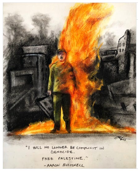 Aaron Bushnell set himself on fire to protest the United States’ complicity in Israel’s genocide of Palestinians. He was only 25.