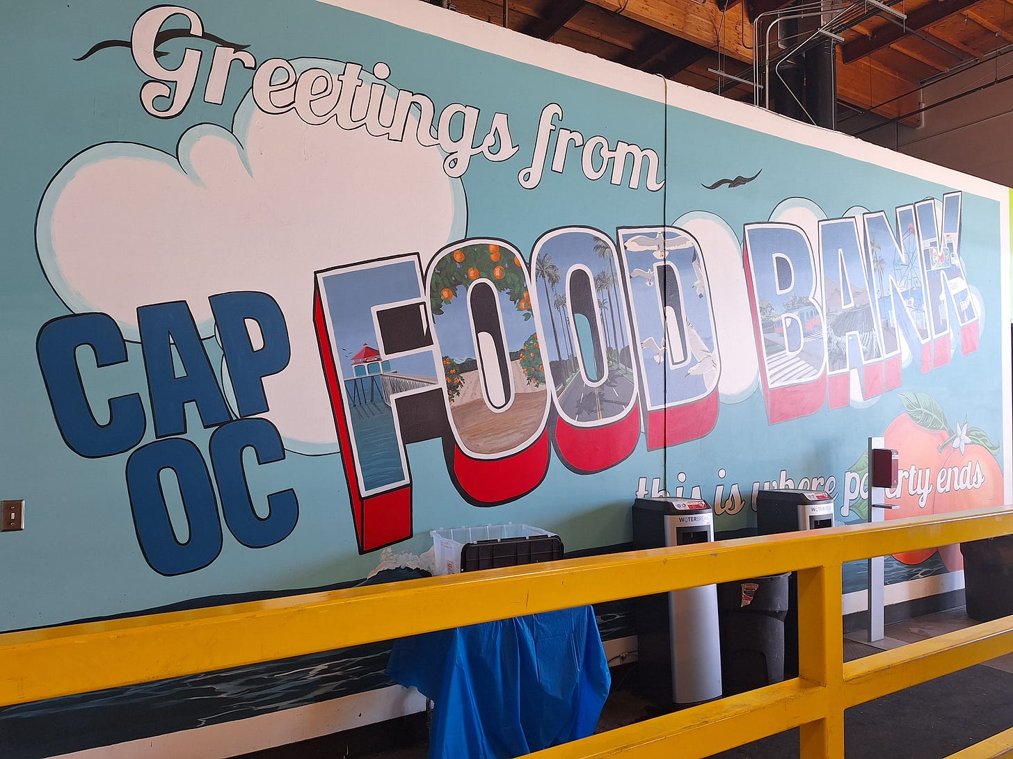 Enter: Community Action Partnership of Orange County. Based in the Garden Grove/Westminster area, CAPOC is a network of warehouses, distribution centers, and even a farm that gets food and supplies to people in crisis. It doesn’t scratch my Palestine itch, but it’s local (enough) and offers shifts on Mondays that aren’t people-facing.