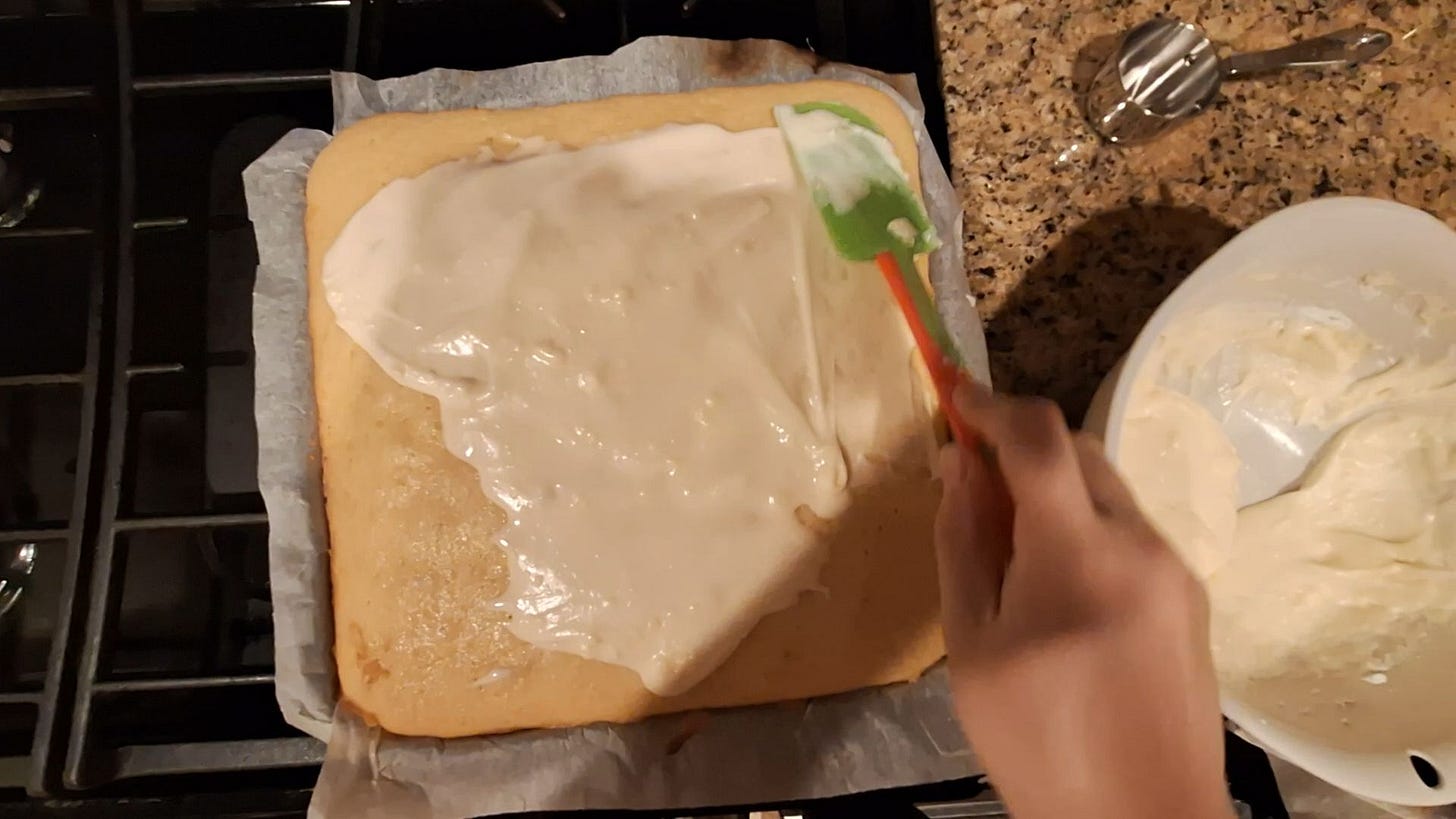 The first cake was a TastyKake imitation, which I baked during my LearningWorks days. That was a whole ordeal - I was working with a whole new recipe, traveling back and forth from Aldi’s to get new ingredients, and dealing with the autistic “I hate change” impulses.